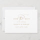 Este elegante casamento branco e dourado, salvo a data, é perfeito para um casamento simples. A design moderna minimalista apresenta caligrafia romântica branca e eterno de ouro com estilo de conto de fadas boêmico. Personalize suas cartões salve a data com seus nomes e data de casamento na frente, e uma foto de noivado, seu endereço de casamento e código QR no verso.