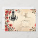 These enchanting Save the Date cards feature a romantic chandelier set against an elegant classic red floral border, creating a timeless and sophisticated look. The intricate floral details complement the refined lighting of the chandelier, evoking a sense of charm and luxury. The rich red hues add warmth and passion, making this design perfect for a wedding announcement that captivates and delights.