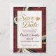 Set a tone of modern luxury for your wedding with this stunning burgundy and black marble Save the Date. This design features dramatic swirling textures of deep red, white, and black, accented by veins of shimmering gold glitter. The sophisticated typography and matching gold heart icon offer a premium, artistic look for your wedding announcement. Easily update the couple's names, wedding date, and venue location.