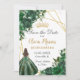 Personalize este bonito e esmeraldo floral Quinceañera / 16 anos de idade doce, salve a data fácil e rapidamente. Basta clicar no botão personalizar para editar os textos, alterar as fontes e as cores das fontes. Apresentando uma garota vestida com um belo vestido verde esmeralda, flores verdes esmeraldas e borboletas. Itens correspondentes disponíveis no repositório. c) Paperie fina somerset