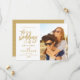 Esta elegante e moderna foto salva a placa de data apresenta uma bela fonte de pincel em ouro. Visite o compro para ver o resto da coleção da suíte Dourada de Tipografia Chic.