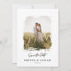 This modern yet elegant save the date card features a script greeting that says "Save the Date", rustic photo frame, and classic typography. There is plenty of space on the back of the card for all the important details or you can customize it further by another photo to the back.