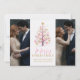 Chic Modern Wedding Pink Christmas Tree 2-Photos in Faux Gold Holiday Cards Save the Date Cards.