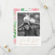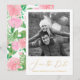 Belos flores rosados desabrocham, exuberante verde aguarela, e caligrafia dourada falsa chique tornam este design de foto uma maneira adorável de compartilhar as boas notícias com amigos e familiares.