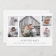 Este casamento elegante, de estilo rústico, salve o cartão de data, apresenta uma colagem de cinco fotos com um simples fundo branco e texto clássico de cinza escura. A maneira minimalista perfeita de deixar seus amigos e família saberem que você vai se casar!