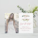 Design moderno e elegante com moldura de flores cor de rosa em aquarela, "salve a data" em letra manuscrita dourada e foto da noiva. Use a ferramenta Personalizar para adicionar suas informações e foto. Para itens correspondentes, visite minha Coleção de Fotos de Chuva de Noiva.