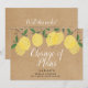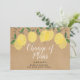 Este cartão rústico boho lemons de chuva de noiva com mudança de planos pode ser personalizado com as informações do seu adiamento. O verso tem detalhes adicionais. Criado por Thisisnotme©
