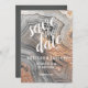 Moderno, salve a placa de data com uma cinza / cristal, um design geode / agate com acentos de folha de ouro rosa. Personalizado com os detalhes do evento. Cinza de novo.