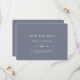 Esta simples cinza azul de slate, horizontal, salvo o cartão de data é perfeito para um casamento moderno. O design boho mínimo apresenta um texto branco clássico em um plano de fundo azul de cinza.