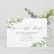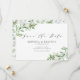 Avise aos seus hóspedes a data do seu casamento com este cartão simples de data. Apresenta uma ilustração aquosa de flores verdes e brancas com um padrão botânico correspondente. Personalize adicionando nomes, data, local e outros detalhes. Este verde que salva o anúncio da data é perfeito para primavera e casamentos no inverno.