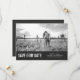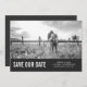 Esses cartões salve a data simples e modernos apresentam sua foto com uma borda de cinza escura abaixo e uma tipografia de blocos brancos em negrito.