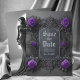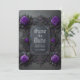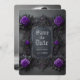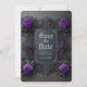 Anuncie seus planos de casamento em estilo com este tema gótico. Salve a data da placa plana com rosas roxas em uma cinza rico e seus nomes, data de casamento e foto no verso para personalizar. Desenhada por Susan Coffey. Imagens geradas com IA.