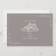 Ilustração de celeiro rústico no topo com borda botânica de arte de linha. O fundo é cinza ametista.
