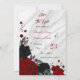 flores negras e vermelhas com folhas de cinza e reluzente prateado em fundo de mármore exceto convite de data Os detalhes da brilha são simulados