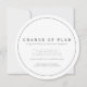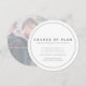 Mudança de plano simples texto cinza e cartão branco com uma foto no verso. Deixe seus convidados saberem que seu casamento ou outro evento foi cancelado ou adiado devido a circunstâncias imprevistas.