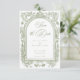 Announce your special day with an elegant traditional wedding photo save the date card featuring a vintage-style arch floral border in soft sage green. The same frame holds your favorite couples photo on the back. Perfect for a formal ceremony or an affair with a classic, timeless aesthetic. This refined design offers an opulent look. Created by Simply Farmhouse Press.