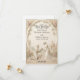 Announce your formal estate union with a romantic neo-classical design featuring a proposal scene and soft botanical accents in a timeless monochrome palette.This design features a highly detailed digital illustration simulating a 3D bas-relief stone carving. The central image depicts a romantic engagement scene where a gentleman kneels to propose to a lady in a flowing gown, set within a classical rotunda temple architecture. The "carved" stone elements are rendered in shades of beige, cream, and warm grey, contrasted by flat-printed pastel pink and peach roses with muted sage green leaves climbing the arched frame. The typography combines an elegant, ornate black calligraphy script for names with a traditional serif font for the details.This is a flat printed image with a Faux Stone Embossed effect, not actual raised material or textured paper.