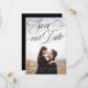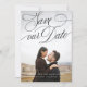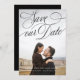 Esse estilo clássico e tradicional, que salva a data com um cartão de espaço reservado para fotos, é ideal para casais que amam uma estética tradicional. A frente vem com as palavras "salve nosso encontro" escrito em um tipo romântico, clássico, de caligrafia. A cor de fundo na parte traseira do cartão pode ser alterada para qualquer cor desejada.