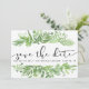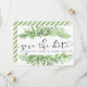 Parabéns no seu noivado! Salve os anúncios de data são o primeiro grande passo no processo de planejamento de casamento! Lembre-se, seu anúncio de salvamento irá definir o tom para seu grande dia, não se esqueça de impressionar os convidados com um design inesquecível e dar uma olhada no que virá! Cercada por uma delicada e tensa folhagem verde e colocada sobre um fundo branco, esta design é atraente e muito bonita. Moderno e simples salvação, o cartão-postal de data aparece no centro entre a folhagem como sobreposição de texto em pincel preto, a moderna tipografia escrita e um cartão-postal de modelo está no verso. Todo estilo de texto, cores, tamanhos também podem ser modificados para ajustado das suas necessidades. Para obter ajuda ou solicitação personalizada (sem encargos) entre em contato conosco ou visite nossa loja