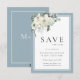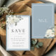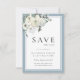 Elegante clássico Salve o cartão de data com flores de marfim aquoso e verde e borda azul empoeirada.