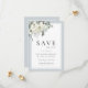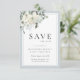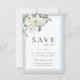 Elegante clássico Salve o cartão de data com flores de marfim aquoso e borda azul empoeirada e verde.
