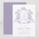 Elegante cartão de salva data de casamento com crista floral vintage de lavanda — perfeito para um casamento moderno clássico ou romântico vintage. Para personalização avançada deste design, clique no BOTÃO FERRAMENTA DE DESIGN acima!