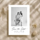 Texto preto limpo, fundo branco e sua foto—este convite de save the date é simples e nítido. Moderno, atemporal e fácil de olhar.
