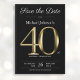 Reserve A Data Classy Black Dourado aniversário de 40 anos Party