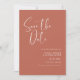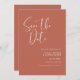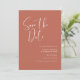 Uma tipografia moderna e uma trendy terracotta, uma paleta colorida de argila e pêssego para sua papelaria de casamento: escolha esta suíte de casamento simples e elegante. Totalmente personalizável: você pode alterar o plano de fundo e a cor do texto conforme desejar.