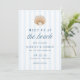 Announce your seaside wedding in style with this Coastal Blue Stripe Shell Beach Wedding Save the Date, featuring a watercolor shell at the top of the design. The phrase “Meet us at the beach” is displayed in elegant navy serif and script lettering, creating a polished and inviting focal point. A soft blue striped background adds subtle color, while your names and wedding details are shown below in a clean, well-balanced layout that keeps the design easy to read. The back of the card features a coordinating striped design. Ideal for beach weddings, destination weddings, summer weddings, and oceanfront venues, this save the date offers a timeless look with a relaxed seaside feel.