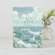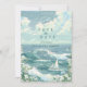 This coastal wedding design features a serene ocean scene with rolling teal waves, a graceful sailboat, and an open sky filled with soft clouds and seabirds. The hand-illustrated watercolor style creates a light, airy atmosphere that feels calm, romantic, and timeless.
