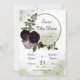 belas flores roxas românticas escuras e claras e folhas verdes arruelas botânicas verdes salvam o convite