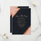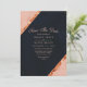 Cartão de Salvar Data Geométrico Rosa Bege Azul Cobre. Este elegante design moderno abstrato apresenta rosa bege, e azul naval acentuado com linhas de cobre em fólia metálica falsa e confetes.