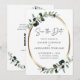 Código QR Atualizado Casamento Metálico Dourado Eucalyptus Salvando a Data Convite.. Nossa luxo botânica Save the Date (Salvar a data) apresenta uma estrutura oval metálica dourada embelezada com folhas poeirentas verdes e de eucalipto abarrotado com esmeraldas criando uma borda natural para o texto do anúncio dentro. A parte traseira do cartão contém as informações do site do casamento e um modelo gráfico de código QR que você pode substituir pelo seu próprio código simplesmente digitando o URL do site do casamento. Todo texto de exemplo (exceto para Salvar a Data) pode ser facilmente revisado com seus próprios detalhes no modelo de personalização.