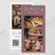 Este simples cartão de convite de código qr, moderno e elegante, com um fundo roxo empoeirado, exude sofisticação e beleza com suas fotos favoritas e contando sua história de amor em uma impressionante colagem de fotos (tira de fotos). Pode anunciar à sua família e amigos e salvar a data do seu próximo casamento. Essa bela salvação da data apresenta uma fonte de caligrafia e coração impressionante e belo guião escrita à mão, emparelhados com uma fonte serif clássica para uma aparência verdadeiramente eterno. É perfeito para o seu tema de casamento! Personalize os nomes, a localização e a data e substitua as fotos pelo seu, o seu Código QR e o URL do site de casamento para que o seu cartão de aviso de data seja salvo com um toque pessoal agradável. Observe que o texto e o coração "Salvar a Data" não podem ser editados, alterados ou excluídos. Você pode personalizar e personalizar o cartão postal para ajustado das necessidades do seu evento de casamento. Você pode personalizar facilmente o convite com o texto como um download digital e enviá-lo eletronicamente e compartilhá-lo com seus convidados através de mensagem de texto, email ou mídia social. Ou também pode optar por enviar/postar o convite relativo aos seus detalhes aos seus convidados. Ou você pode receber ambos — convite impresso e receber o convite em formato digital como um download instantâneo.