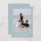 Estes cartões salve a data de casamento minimalistas e elegantes apresentam um texto branco moderno sobre um fundo azul claro e em pó, com sua foto pessoal. Um olhar chic, simples e na moda. Você pode adicionar seu código de QR digitalizável no verso para que os convidados possam visitar facilmente seu site de casamento.