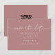 Este cartão de salvar a data apresenta um fundo rosa poeirento com letras em escrita romântica e um layout minimalista e limpo. A tipografia elegante mantém o foco nos nomes do casal e na data do casamento para um anúncio atemporal. O verso inclui espaço para um código QR que liga os convidados diretamente ao site do casamento para detalhes e informações de viagem. Perfeito para casais que planejam um estilo de casamento rosa poeirento, rosa corado ou romântico moderno.