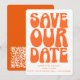 Torne seu dia especial inesquecível desde o início com este cartão "Salve Nossa Data" inspirado no estilo retrô, apresentando tipografia laranja ousada que lembra os groovy anos 1970. Perfeito para casais que amam estética lúdica e nostálgica, este design define um tom divertido e vibrante para as celebrações do seu casamento. Ideal para temas de casamento modernos boho, retrô ou não convencionais, este cartão pode ser personalizado com seus nomes, data e detalhes do local para criar um anúncio memorável que seus convidados adorarão. Disponível impresso ou como download digital. Adicione seu código QR no verso.