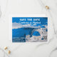 Desta forma, Salve o Convite à Data com o Código QR e o Poster de viagens de Santorini, a Grécia é a forma perfeita de anunciar a sua próxima celebração em estilo. Este convite único combina a elegância clássica dos posteres de viagens com a conveniência da tecnologia moderna. A frente do convite apresenta um poster de viagens impressionante, completo com seus marcos e atrações icônicos. A frente do convite inclui um código QR que os convidados podem digitalizar com seus smartphones para acessar instantaneamente todos os detalhes do seu casamento no site do seu casamento.