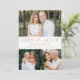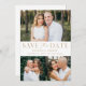 Elegante, com várias fotos, salve a data com "Salvar a Data" exibida em letras douradas com fundo branco. Personalize o QR moderno salve o cartão de data com 3 de suas fotos favoritas, seus nomes, data de casamento e local do casamento. O ouro salve os estornos de data para exibir seu código QR personalizado com o site de casamento e o texto personalizado.