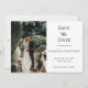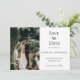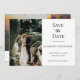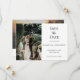 Personalize esta foto de casamento elegante formal e preto, salve o cartão. Há espaço na frente para uma foto e espaço no verso para outra foto. Uma maneira excelente de mostrar essas fotos de noivado. Adicione o seu site de casamento ao código QR para que os seus convidados possam digitalizar facilmente o seu site.