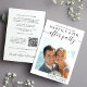 O elopemento moderno e chico ou o anúncio e a recepção privados de casamento salvam a data com sua foto e "Salve a data para nossa festa feliz" em uma mistura de simples tipografia e um roteiro de tendências com picos. Adicione seus primeiros nomes, data de recepção e local. No verso, personalize seu anúncio de casamento, crie um código QR vinculado ao seu site de casamento para que seus convidados pesquisem mais informações e adicionem seus nomes em um roteiro semelhante a assinatura.