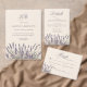 Este elegante e simples casamento monograma floral, exceto a data, apresenta uma delicada lavanda de flores desenhando com fundo quente. Personalize este belo cartão de data com seu próprio texto, código QR e foto.