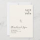 Um design preto e branco minimalista, com um sofisticado guião de assinatura, acentuado com uma coroa botânica contra um fundo de cor de marfim. Um destaque Salve o anúncio do casamento da Data com a capacidade do código QR que se encaixa bem com a maioria dos locais de casamento modernos.