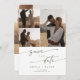 Este código de QR de fotos multicamadas branco e verde boho salva o cartão de data é perfeito para um casamento minimalista. A design boêmica moderna e verde-oliva neutra apresenta uma caligrafia rustica simples com um estilo único, mas clássico. Personalize sua data de salvamento com seus nomes, data de casamento, local, 4 fotos de noivado e um código de QR que liga ao seu site de casamento.