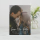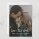 Um moderno e casual salve o anúncio da data com sua foto vertical/retrato favorita sobreposta com "salve a data" em letra casual branca moderna, escrita à mão. Personalize ainda mais adicionando detalhes do seu site de casamento com um código QR no sentido inverso.