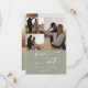 Esse código de QR verde multifoto verde boho sage, salve o cartão de data é perfeito para um casamento minimalista. A moderna design boêmica verde-luz neutra apresenta uma caligrafia rústica simples com um estilo único, mas clássico. Personalize sua data de salvamento com seus nomes, data de casamento, local, 4 fotos de noivado e um código de QR que liga ao seu site de casamento.