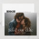 Elegante e na moda salve o cartão de data com um texto de sobreposição de tipografia que diz "salve nossa data" com sua foto horizontal. Você pode adicionar um código QR na parte traseira que liga ao seu site de casamento.