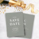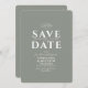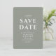 Um sábio verde minimalista / verde claro salve o cartão de data sem imagem e uma ilustração desenhada à mão verde, apresentando uma combinação de fontes em negrito e de script para o visual de chic, no verso um monograma e um código QR para seu site ou registro. Se você precisa de peças que não estejam na coleção, por favor me avise (Maria) feliz em ajudar!