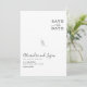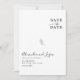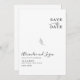 Um design preto e branco minimalista, com um sofisticado guião de assinatura, acentuado com uma coroa botânica. Um destaque Salve o anúncio do casamento da Data com a capacidade do código QR que se encaixa bem com a maioria dos locais de casamento modernos.